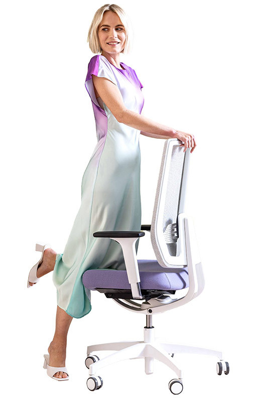 Die dreidimensionale Rückenlehne sorgt an jedem Arbeitsplatz für eine optimale Haltung der Wirbelsäule. Super private, super social, super ergonomisch.